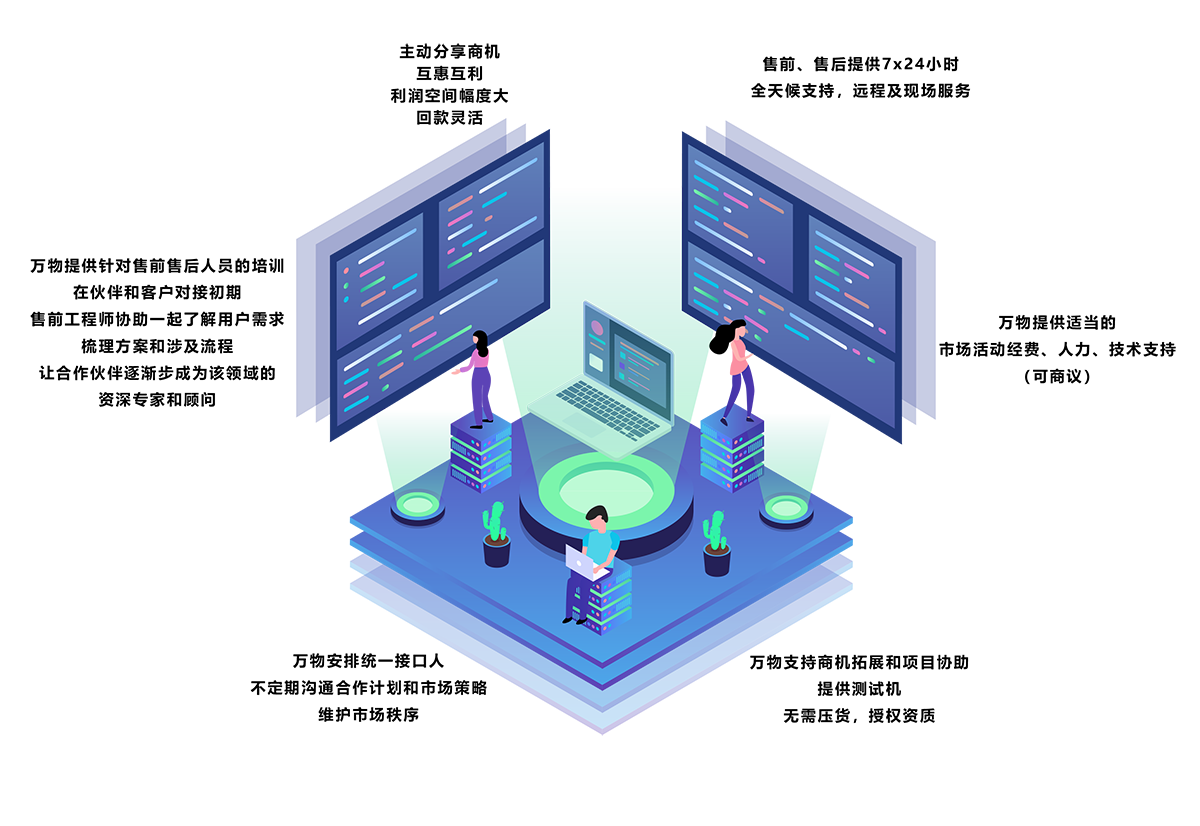万物会为合作伙伴提供相应的市场支持和技术支持万物需要的合作伙伴: